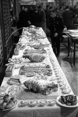 Barrack is a word normally used to describe where soldiers sleep, officers live in a mess (very appropriate I hear you say!)a word taken from the days of the Raj.In this case the building looks as if it could be the gymnasium and I agree the Christmas spread looks fabulous which is surprising since it was before the end of National Service and food in the Army was generally regarded as disgusting! I joined the Army in 1959 at the end of National Service and the start of the Regular Army.